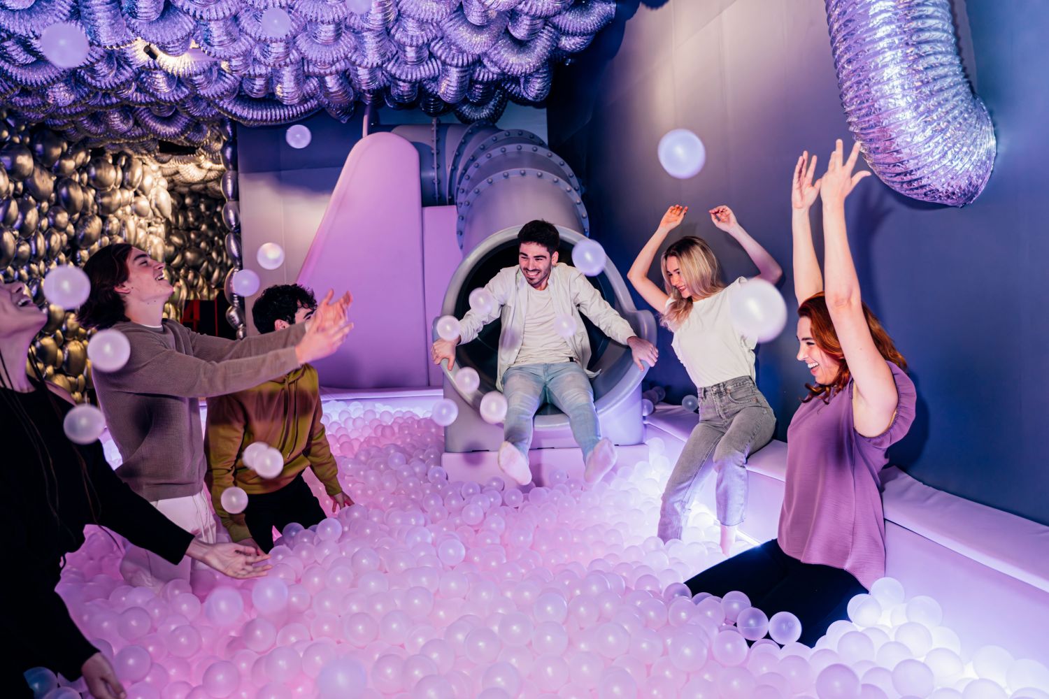 Hay algo que se queda por el camino cuando crecemos: la capacidad de dejarnos llevar, de probar sin expectativas y de sorprendernos sin pensar demasiado en el resultado. Volver a jugar es, en el fondo, recuperar esa curiosidad que a veces se pierde entre prisas y rutinas. Desde montar un Lego o hacer un puzle hasta experiencias inmersivas que permiten jugar con los cinco sentidos. En ese sentido, una de sus salas estrella entre el público adulto (y también el infantil) de IKONO es su piscina de bolas, que según reconocen los visitantes del espacio, los transporta a esa época de celebraciones en los parques de bolas cuando eran más pequeños. Y es que, todo vale cuando se trata de reconectar con la espontaneidad y recordar que la vida adulta también tiene espacio para la ligereza.
