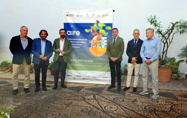 Esta mañana se ha llevado a cabo la presentación de AIRE 24, la Feria Internacional de Espacios Naturales, Turismo Activo y Ecoturismo, en la Diputación de Córdoba. El evento fue liderado por Vicente Sánchez Migallón, director técnico de POMONA KEEPERS, la empresa organizadora de AIRE; José Enrique Borrallo Romero, director general de Espacios Naturales Protegidos de la Junta de Andalucía, Consejería de Medio Ambiente, Cambio Climático y Economía Azul; Rafael Martínez Ruedas, delegado territorial de Sostenibilidad, Medio Ambiente y Economía Azul de la Junta de Andalucía en Córdoba; Félix Romero, presidente de IPRODECO y Vicepresidente tercero de la Diputación de Córdoba; Daniel García-Ibarrola, concejal de Turismo, Sostenibilidad y Medio Ambiente del Ayuntamiento de Córdoba; y Arturo Crosby, director de conferencias de AIRE.