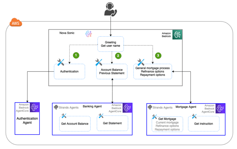 La arquitectura multicliente de Nova Sonic se destaca por su diseño modular, robusto y escalable, lo que la hace adecuada para asistir en aplicaciones de voz de alto rendimiento. Los agentes de voz de Nova Sonic se integran con el marco de sub-agentes de Strands, aprovechando a su vez Amazon Bedrock AgentCore para crear un sistema multicliente efectivo.