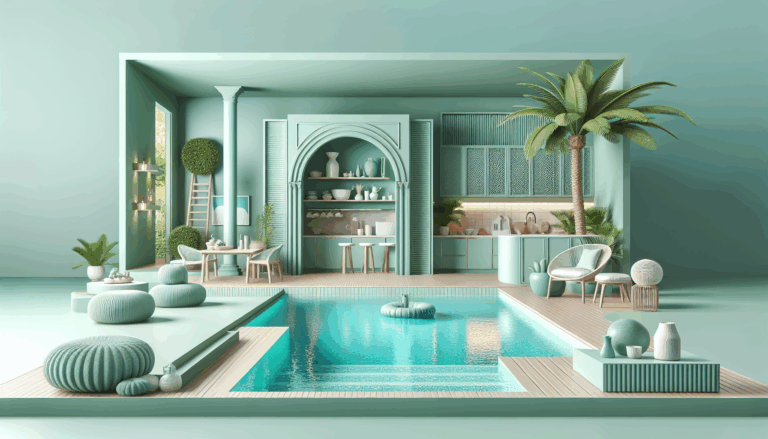 Un Oasis de Estilo: Piscina y Cocina Elegante en Verde Menta